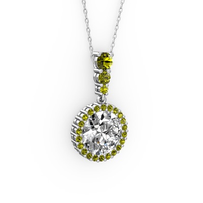 Swarovski ve peridot 14 ayar beyaz altın kolye (40 cm beyaz altın rolo zincir)