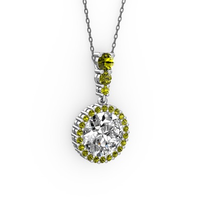 Swarovski ve peridot 14 ayar beyaz altın kolye (40 cm gümüş rolo zincir)