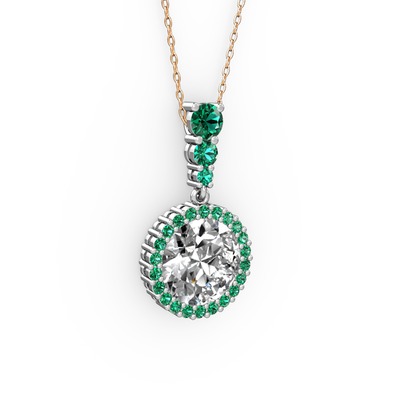 Swarovski ve yeşil kuvars 18 ayar beyaz altın kolye (40 cm rose altın rolo zincir)