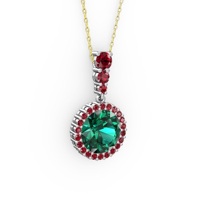 Yeşil kuvars ve garnet 18 ayar beyaz altın kolye (40 cm gümüş rolo zincir)