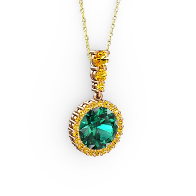 Yeşil kuvars ve sitrin 14 ayar rose altın kolye (40 cm altın rolo zincir)