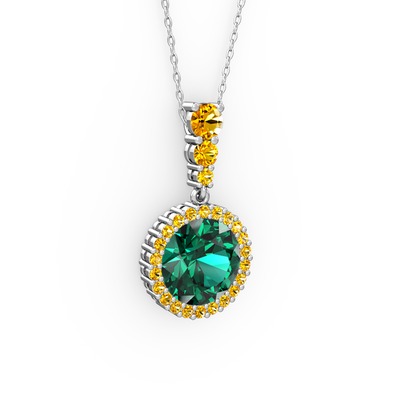 Yeşil kuvars ve sitrin 18 ayar beyaz altın kolye (40 cm gümüş rolo zincir)