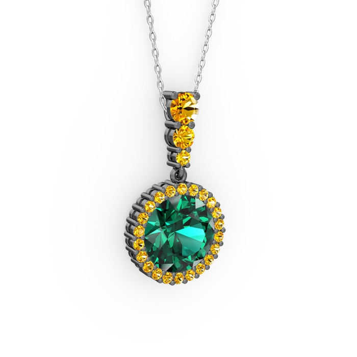 Yeşil kuvars ve sitrin 925 ayar siyah rodyum kaplama gümüş kolye (40 cm gümüş rolo zincir)
