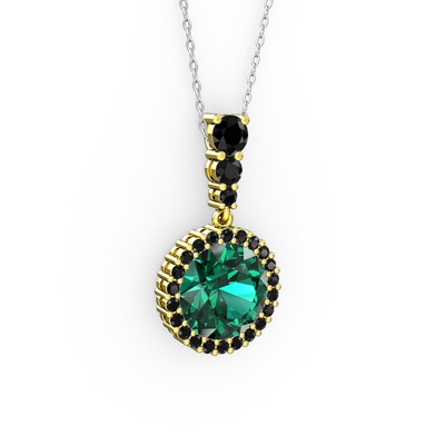 Yeşil kuvars ve siyah zirkon 18 ayar altın kolye (40 cm gümüş rolo zincir)