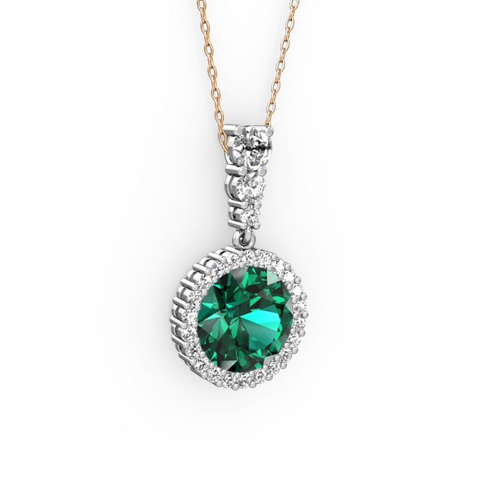 Yeşil kuvars ve swarovski 8 ayar beyaz altın kolye (40 cm rose altın rolo zincir)