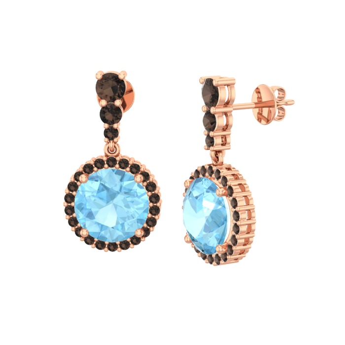 Akuamarin ve dumanlı kuvars 18 ayar rose altın küpe