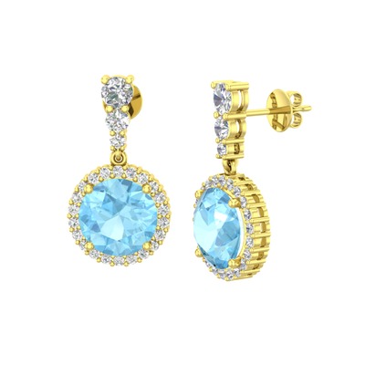 Akuamarin ve swarovski 925 ayar altın kaplama gümüş küpe