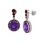 Ametist ve garnet 8 ayar beyaz altın küpe