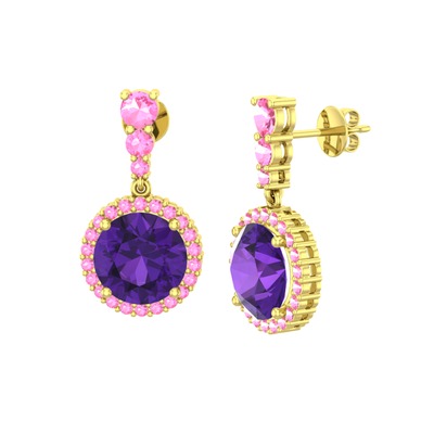 Ametist ve pembe kuvars 8 ayar altın küpe