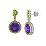 Ametist ve peridot 8 ayar beyaz altın küpe