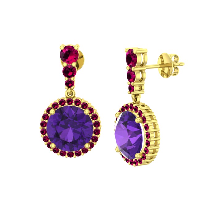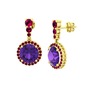 Ametist ve rodolit garnet 18 ayar altın küpe