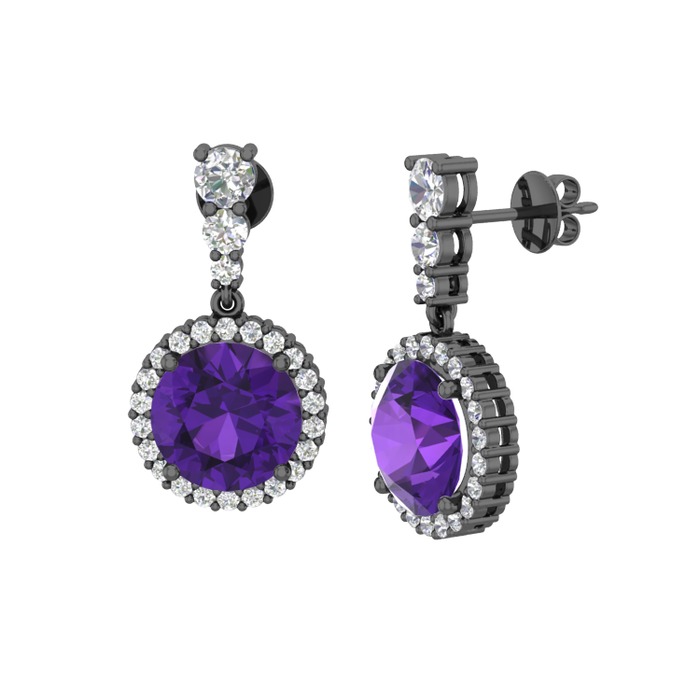 Ametist ve swarovski 925 ayar siyah rodyum kaplama gümüş küpe