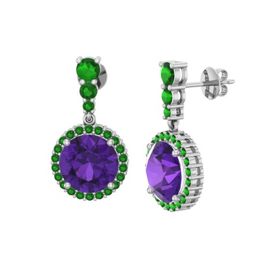 Ametist ve yeşil kuvars 18 ayar beyaz altın küpe