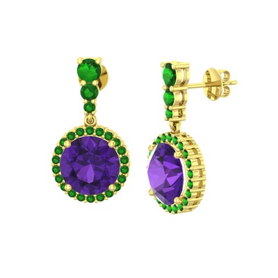 Ametist ve yeşil kuvars 925 ayar altın kaplama gümüş küpe