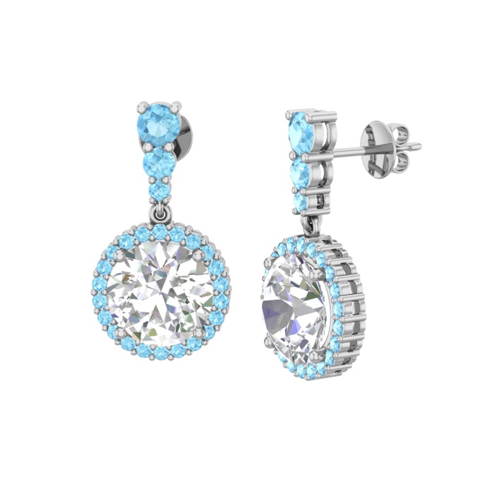Beyaz zirkon ve akuamarin 18 ayar beyaz altın küpe