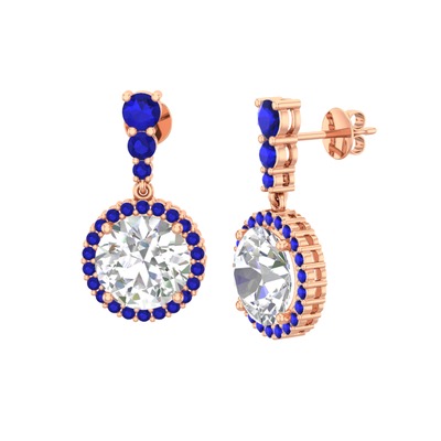 Beyaz zirkon ve lab safir 18 ayar rose altın küpe