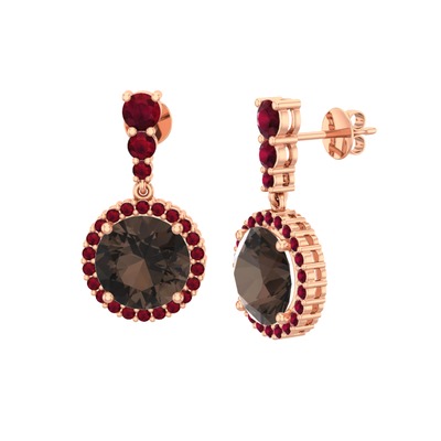 Dumanlı kuvars ve kök yakut 14 ayar rose altın küpe