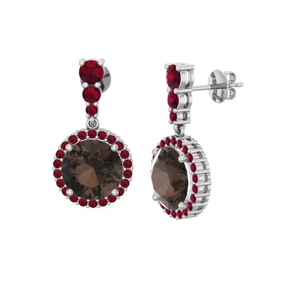 Dumanlı kuvars ve kök yakut 925 ayar gümüş küpe