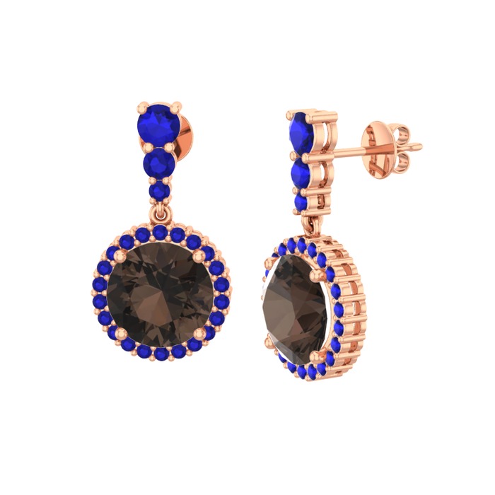 Dumanlı kuvars ve lab safir 8 ayar rose altın küpe