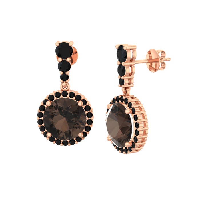 Dumanlı kuvars ve siyah zirkon 18 ayar rose altın küpe