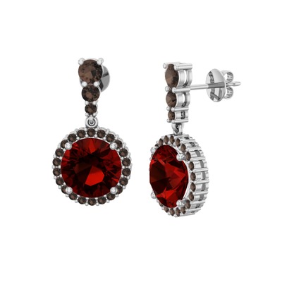 Garnet ve dumanlı kuvars 925 ayar gümüş küpe