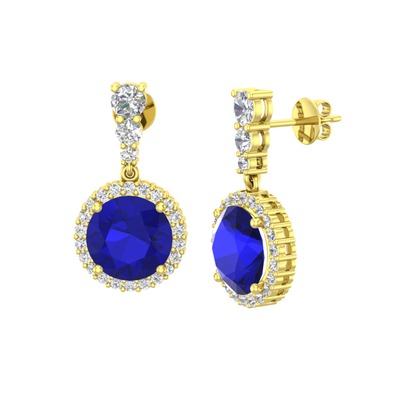 Lab safir ve beyaz zirkon 14 ayar altın küpe