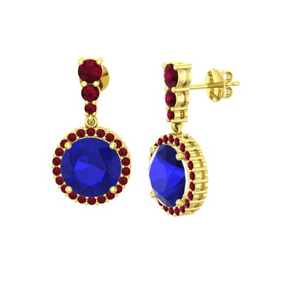 Lab safir ve kök yakut 14 ayar altın küpe