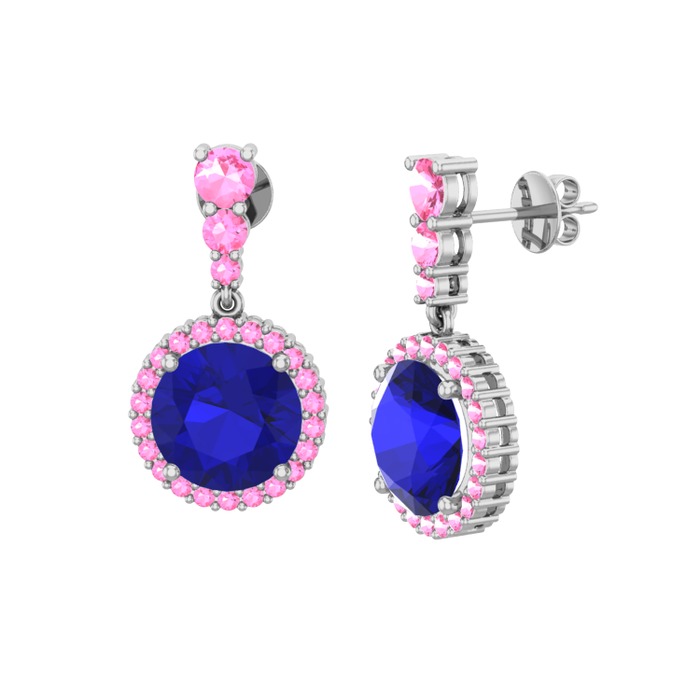 Lab safir ve pembe kuvars 925 ayar gümüş küpe