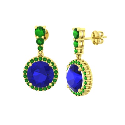 Lab safir ve yeşil kuvars 18 ayar altın küpe