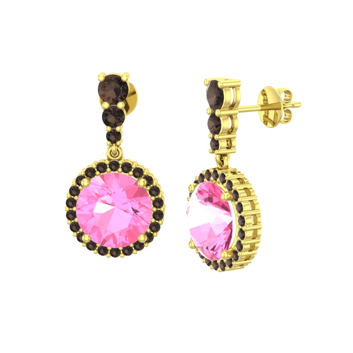 Pembe kuvars ve dumanlı kuvars 18 ayar altın küpe