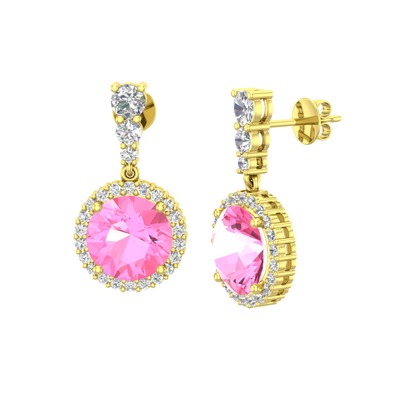Pembe kuvars ve swarovski 14 ayar altın küpe