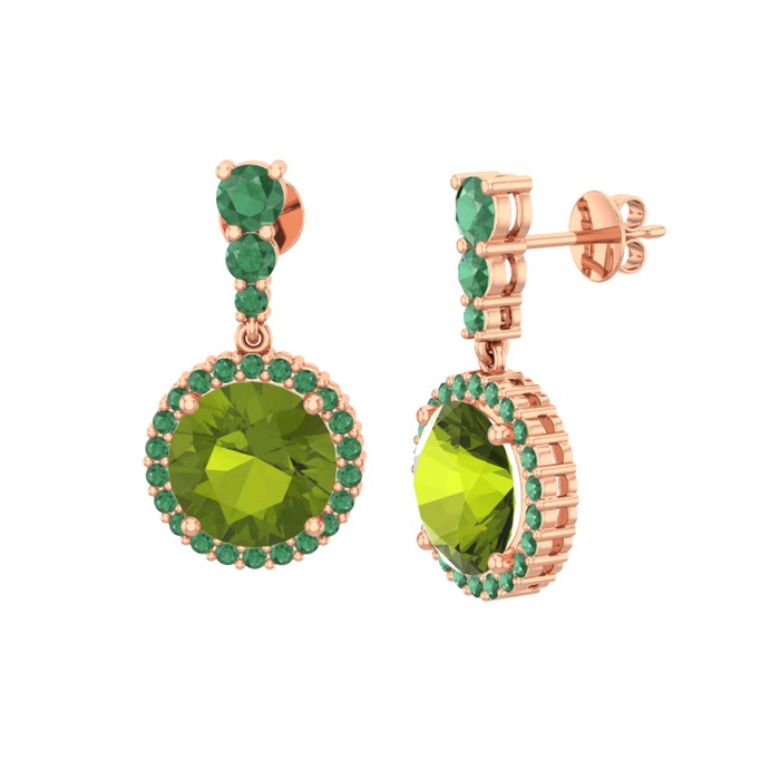 Peridot ve kök zümrüt 925 ayar rose altın kaplama gümüş küpe