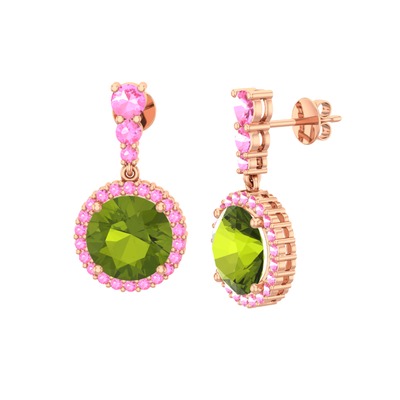 Peridot ve pembe kuvars 8 ayar rose altın küpe