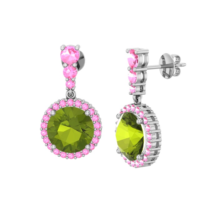 Peridot ve pembe kuvars 925 ayar gümüş küpe