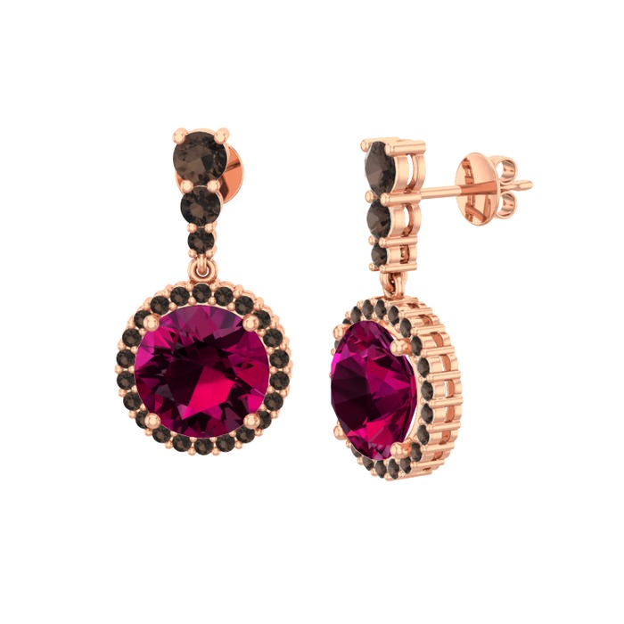 Rodolit garnet ve dumanlı kuvars 925 ayar rose altın kaplama gümüş küpe