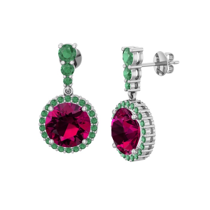 Rodolit garnet ve kök zümrüt 18 ayar beyaz altın küpe