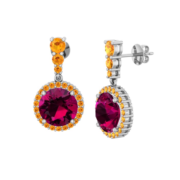 Rodolit garnet ve sitrin 18 ayar beyaz altın küpe