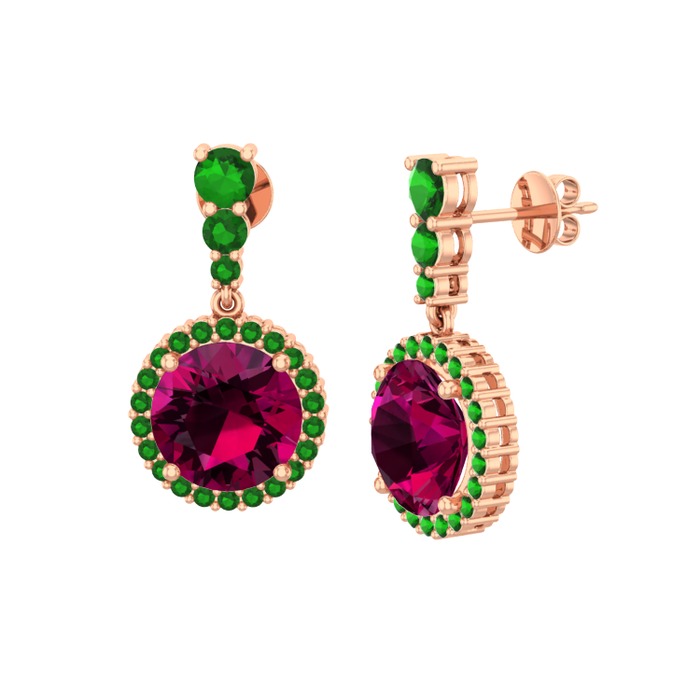 Rodolit garnet ve yeşil kuvars 8 ayar rose altın küpe