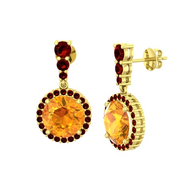 Sitrin ve garnet 925 ayar altın kaplama gümüş küpe