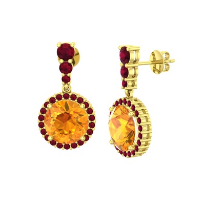 Sitrin ve kök yakut 8 ayar altın küpe