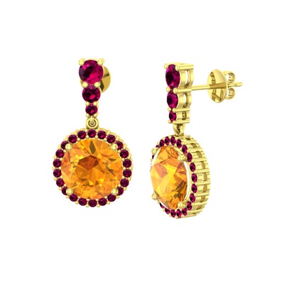 Sitrin ve rodolit garnet 18 ayar altın küpe