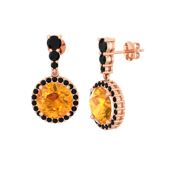 Sitrin ve siyah zirkon 18 ayar rose altın küpe