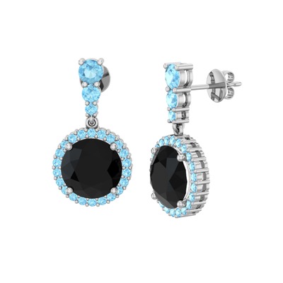 Siyah zirkon ve akuamarin 14 ayar beyaz altın küpe