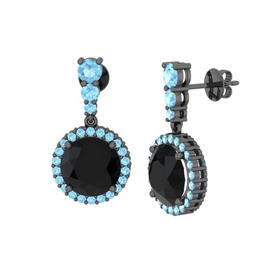 Siyah zirkon ve akuamarin 925 ayar siyah rodyum kaplama gümüş küpe