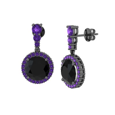 Siyah zirkon ve ametist 925 ayar siyah rodyum kaplama gümüş küpe