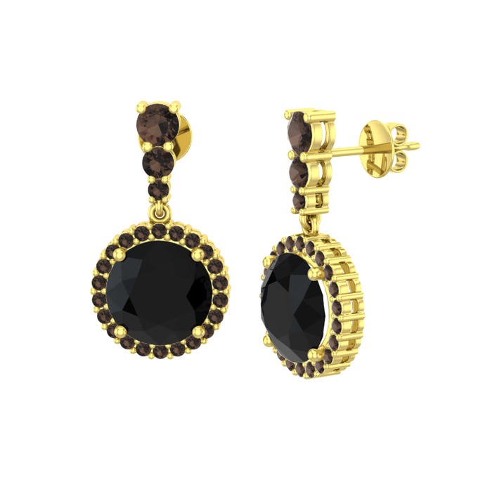 Siyah zirkon ve dumanlı kuvars 18 ayar altın küpe