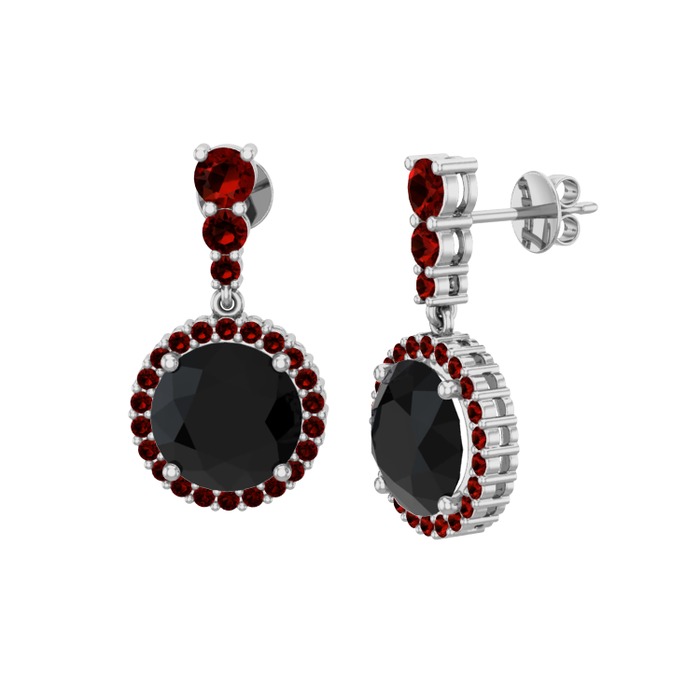 Siyah zirkon ve garnet 14 ayar beyaz altın küpe