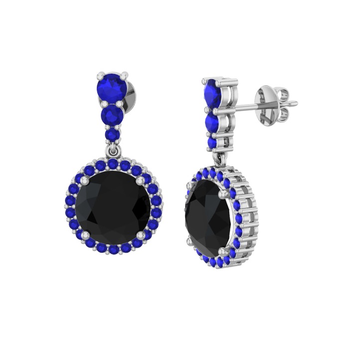 Siyah zirkon ve lab safir 14 ayar beyaz altın küpe