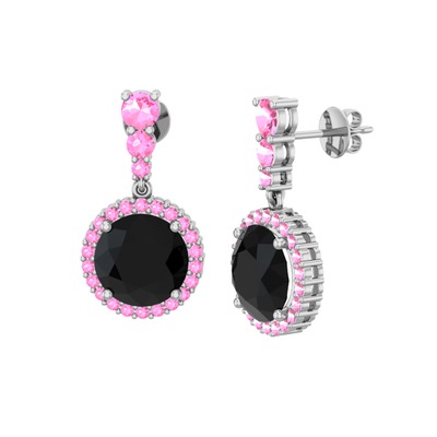 Siyah zirkon ve pembe kuvars 14 ayar beyaz altın küpe