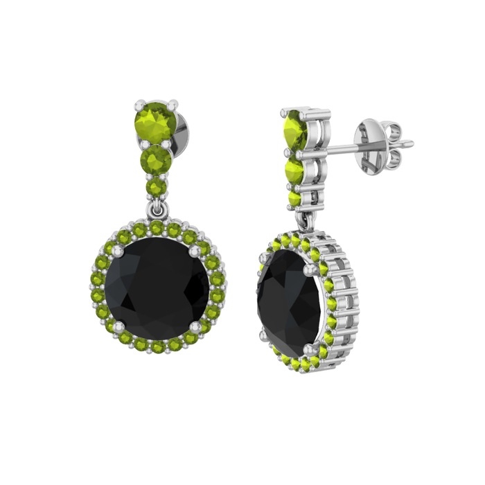 Siyah zirkon ve peridot 18 ayar beyaz altın küpe